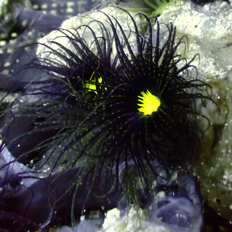 Pas wel op met kleine visjes want deze dieren hebben net als andere anemonen netelcellen.