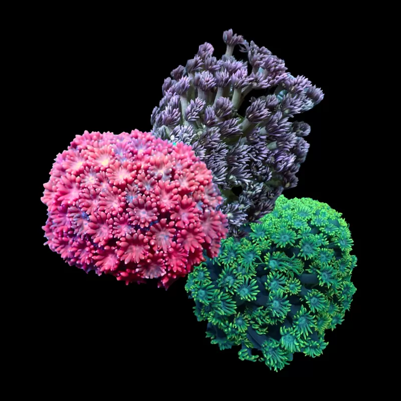 Ontdek onze exclusieve Goniopora Pack, samengesteld uit drie verschillende kleuren koralen. Elk pakket is met zorg samengesteld en is daardoor volledig uniek en verrassend.