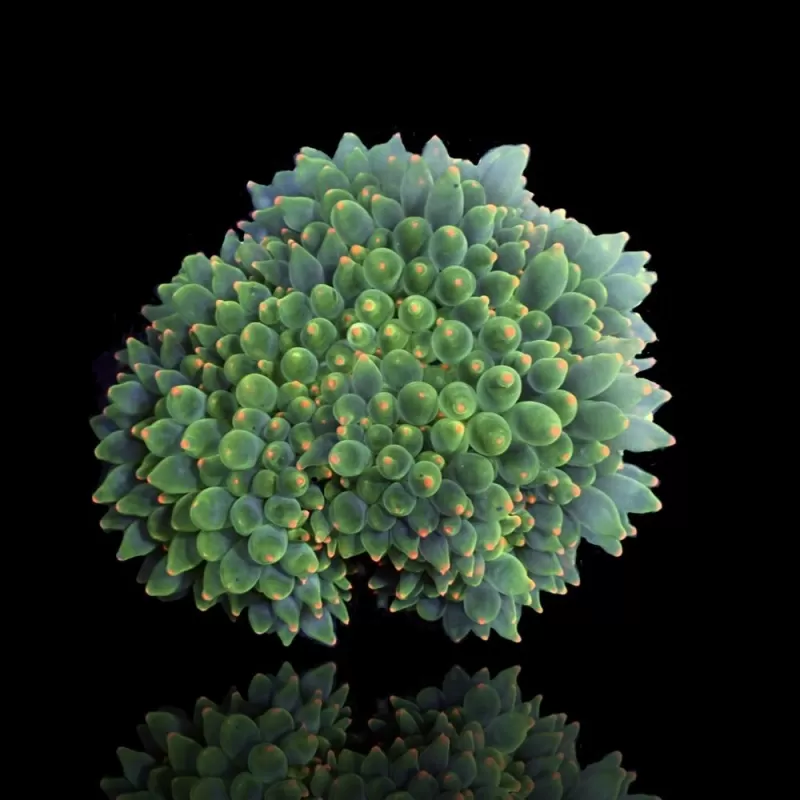De Entacmaea Quadricolor, ook wel bekend als de Bubbelanemoon, is een spectaculaire aanvulling op rifaquaria. Deze variant heeft een opvallende groene kleur met prachtige roze uiteinden aan de tentakels, wat zorgt voor een levendig contrast en een uniek uiterlijk.