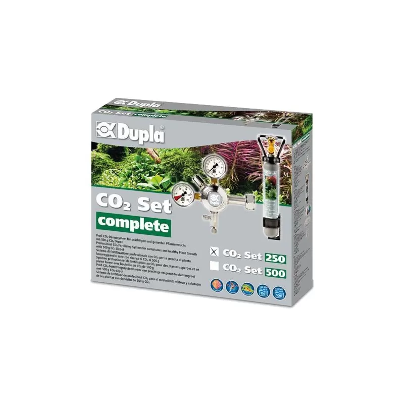 Compleet Profi CO2-bemestingssysteem voor een prachtige en gezonde plantengroei. Bestaande uit een CO2-set 250 inclusief 500 g CO2-depot. Afgestemd op aquaria tot 250 liter bestaat de complete CO2-set uit de volgende componenten: CO2-armatuur Pro De CO2-armatuur Pro is een drukregelaar met een drukvast precisie-fijnnaaldventiel voor de fijnste en nauwkeurigste instelling van het aantal belletjes. Nieuw met geïntegreerde terugslagklep ter bescherming van de armatuur tegen het terugstromende water. Grote, goed afleesbare werk- en flesdrukmanometer. Incl. overdrukventiel. CO2 Set 250 CO2-verstuiver met glazen frit en geïntegreerde bellenteller voor de optische controle van de ingestelde hoeveelheid CO2. Eenvoudig aan te brengen en te gebruiken.