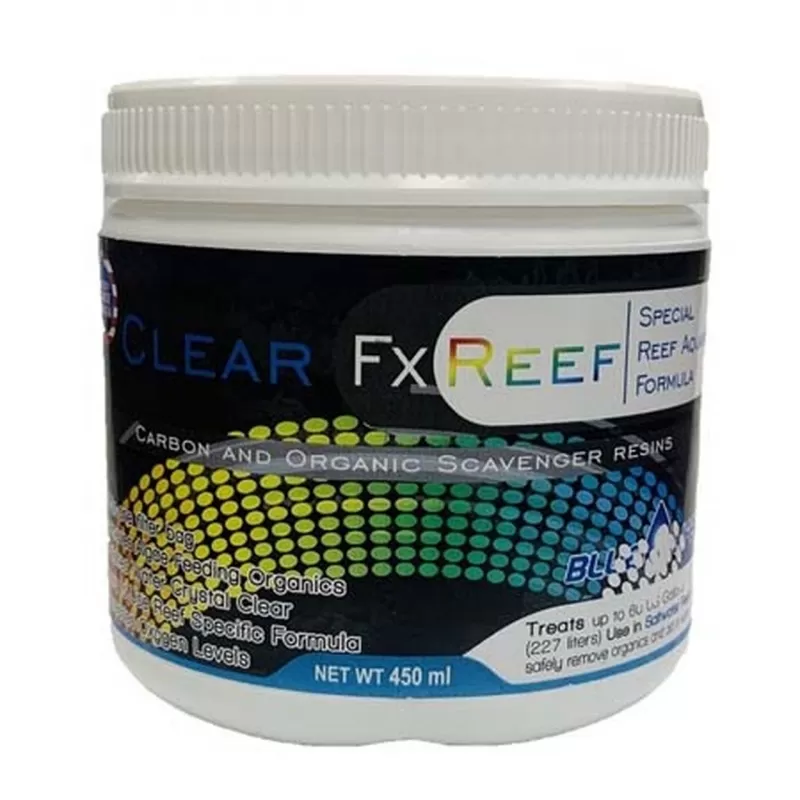 Clear Fx Reef is een geavanceerd, uitgebreid filtermedium voor zee aquariums en is het enige filtermedium dat nodig is om de gezondheid, helderheid en stabiliteit van uw aquarium te garanderen. Dit gespecialiseerde Reef Filtration-medium maakt gebruik van de allernieuwste technologie die specifiek gericht is op en verwijdert organische stoffen waarmee hinderlijke algen zich voeden vanuit uw rif. Dit gespecialiseerde rif medium verwijdert geen belangrijke sporenelementen die uw rif nodig heeft, terwijl het water wordt gepolijst voor kristalhelder zicht. Clear Fx Reef verhoogt redox (ORP), verhoogde zuurstof is gunstig voor de levendigheid van vissen en koralen en verhoogde activiteit.