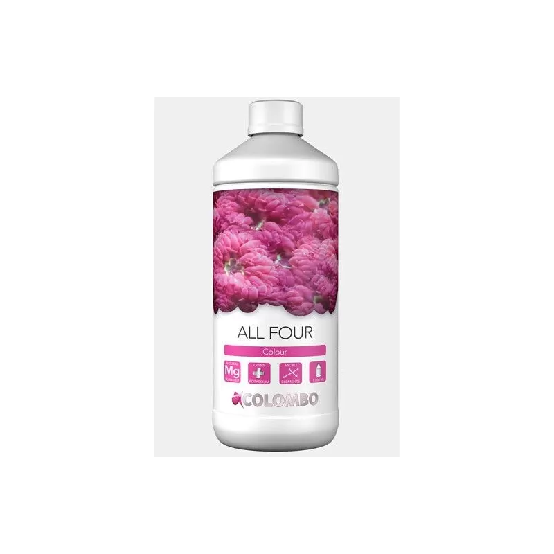 Voor een succesvol aquarium is het zaak de waterwaarden stabiel en op niveau te houden. Met Colombo All Four kunt de waterwaarden op een eenvoudige manier onderhouden. Colombo All Four bevat Magnesium en en tal van andere elementen zoals Ijzer, Kalium en Jodium, die belangrijk zijn voor de kleuring van het koraal.