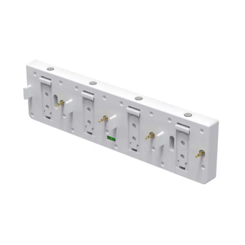 Basisstation voor de Ecotech Versa doseerpomp. De afzonderlijke doseerpompen kunnen op het basisstation geklikt worden.