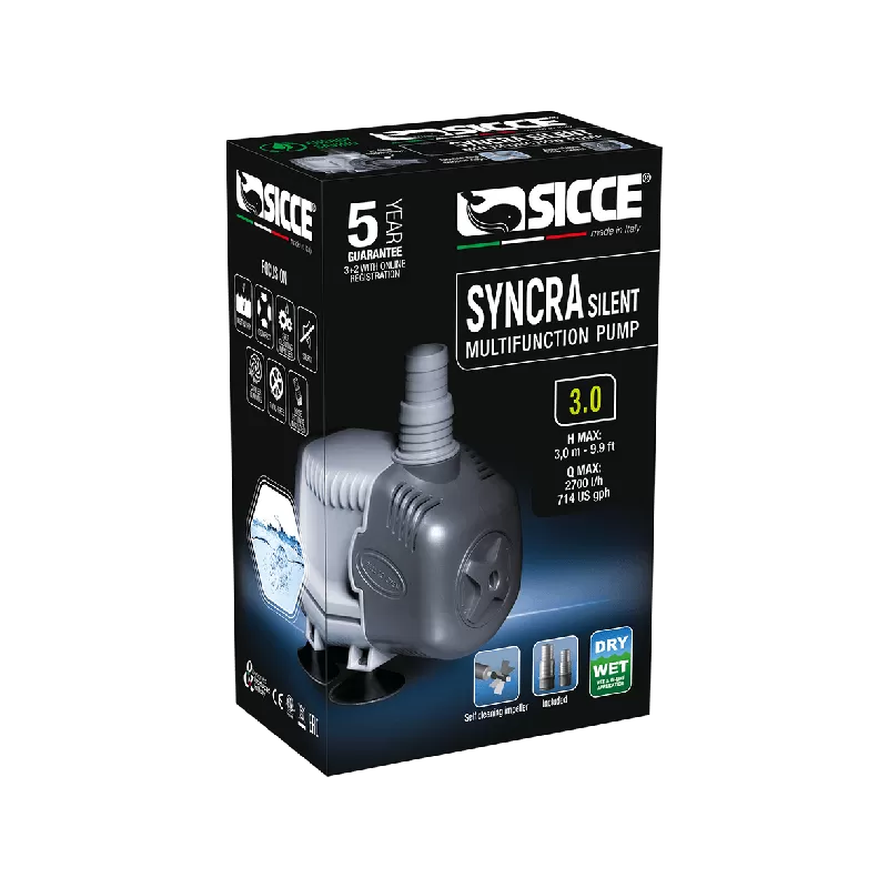Sicce Syncra 3.0 is een krachtige en stille multifunctionele pomp, ontworpen voor zowel natte als droge toepassingen. Dankzij de energiezuinige motor en betrouwbare prestaties is deze pomp ideaal voor aquaria, fonteinen en andere waterinstallaties.