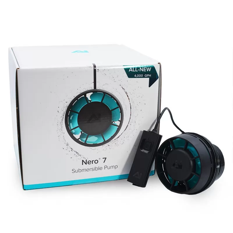 Standaard propeller- en waaierontwerpen kunnen een harde waterstroom produceren, waardoor het moeilijk is om de pomp te positioneren. Met zijn omgekeerde motorontwerp creëert de NERO een instelbare brede stroom terwijl het profiel van de pomp compact blijft. Dit zal grote hoeveelheden water verplaatsen, afval naar de aquariumfiltratie transporteren en dode stroomgebieden voorkomen zonder de koralen te vernietigen.